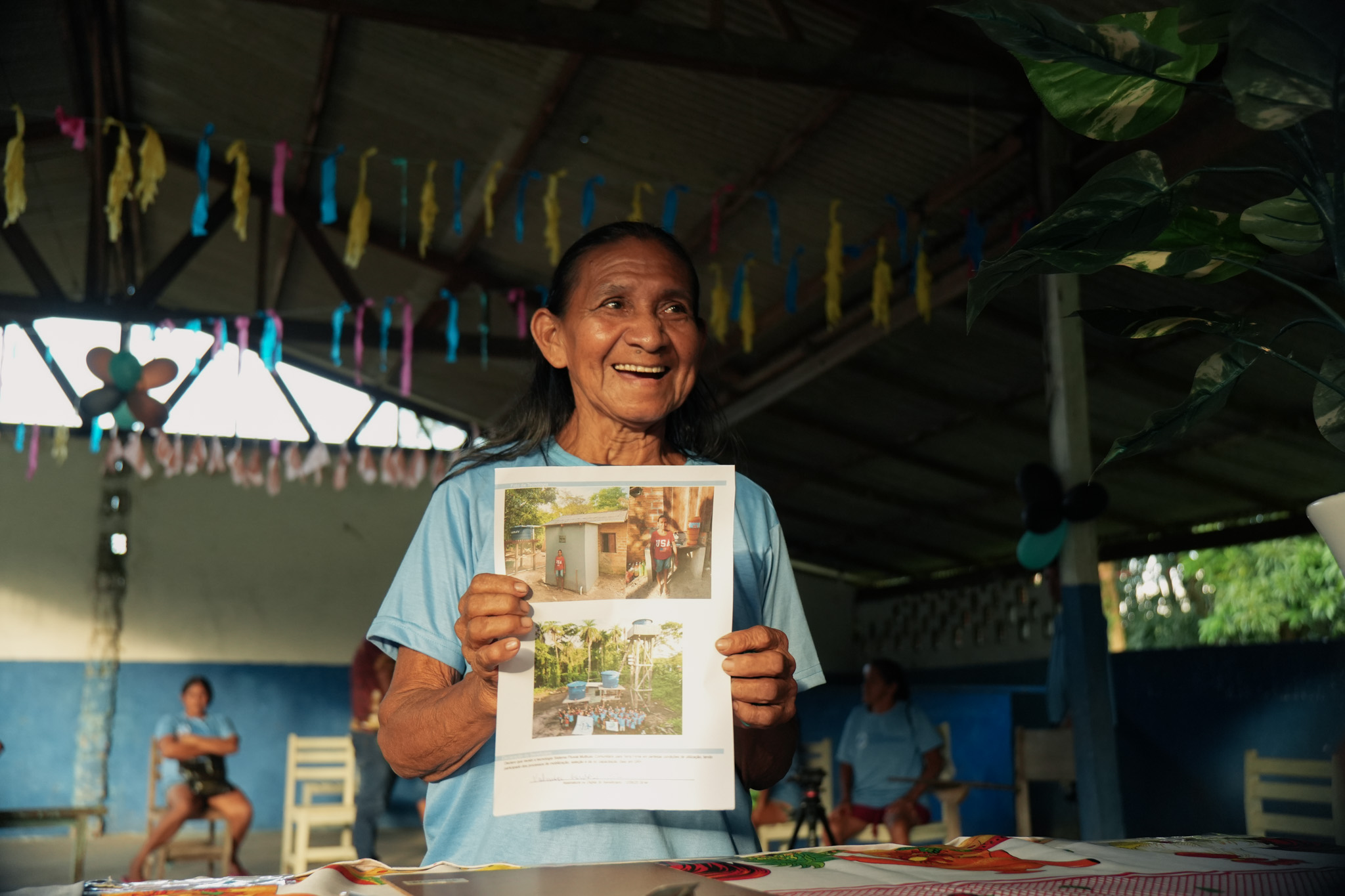 Na Aldeia Pajurá, onde 36 famílias foram beneficiadas, lideranças destacaram o processo de articulação que viabilizou a chegada do projeto. O cacique Raimundo Tupinambá lembrou que o acesso à água sempre foi uma preocupação do coletivo. “Água é vida, né? A gente pode ter tudo na vida, mas não tendo água a gente não é nada. O povo tá feliz, graças a Deus. Hoje estão todos com água, caixas cheias, tomando banho no banheiro deles”, afirmou.