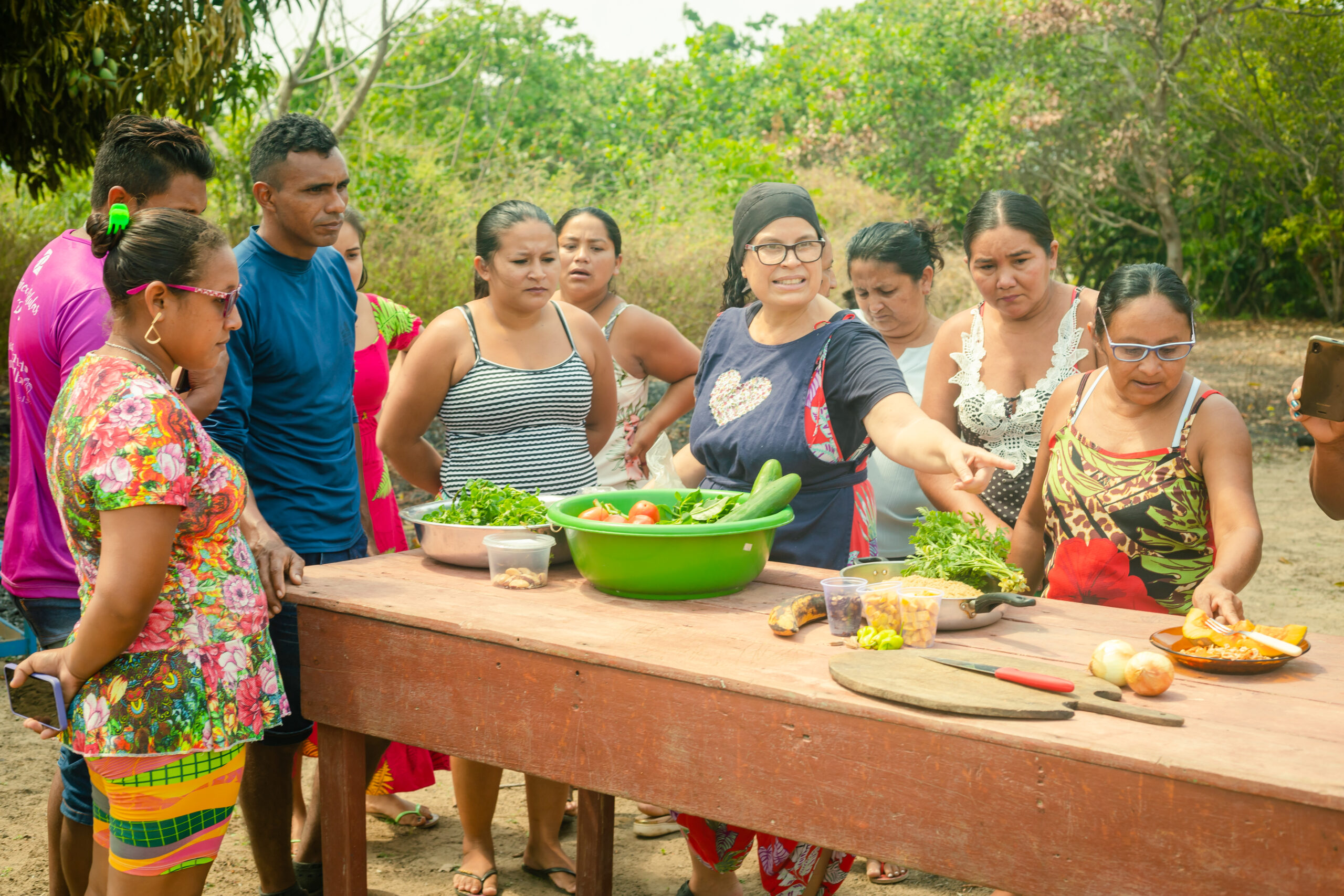 “A gente tem muito alimento e tem coisas que a gente não sabia. Salada de arroz com manga e gergelim foi uma novidade. O gergelim dá bastante e a gente não aproveitava. Hoje em dia eu já sei” – Ciléia Dias, presidente da comunidade Nuquinin.