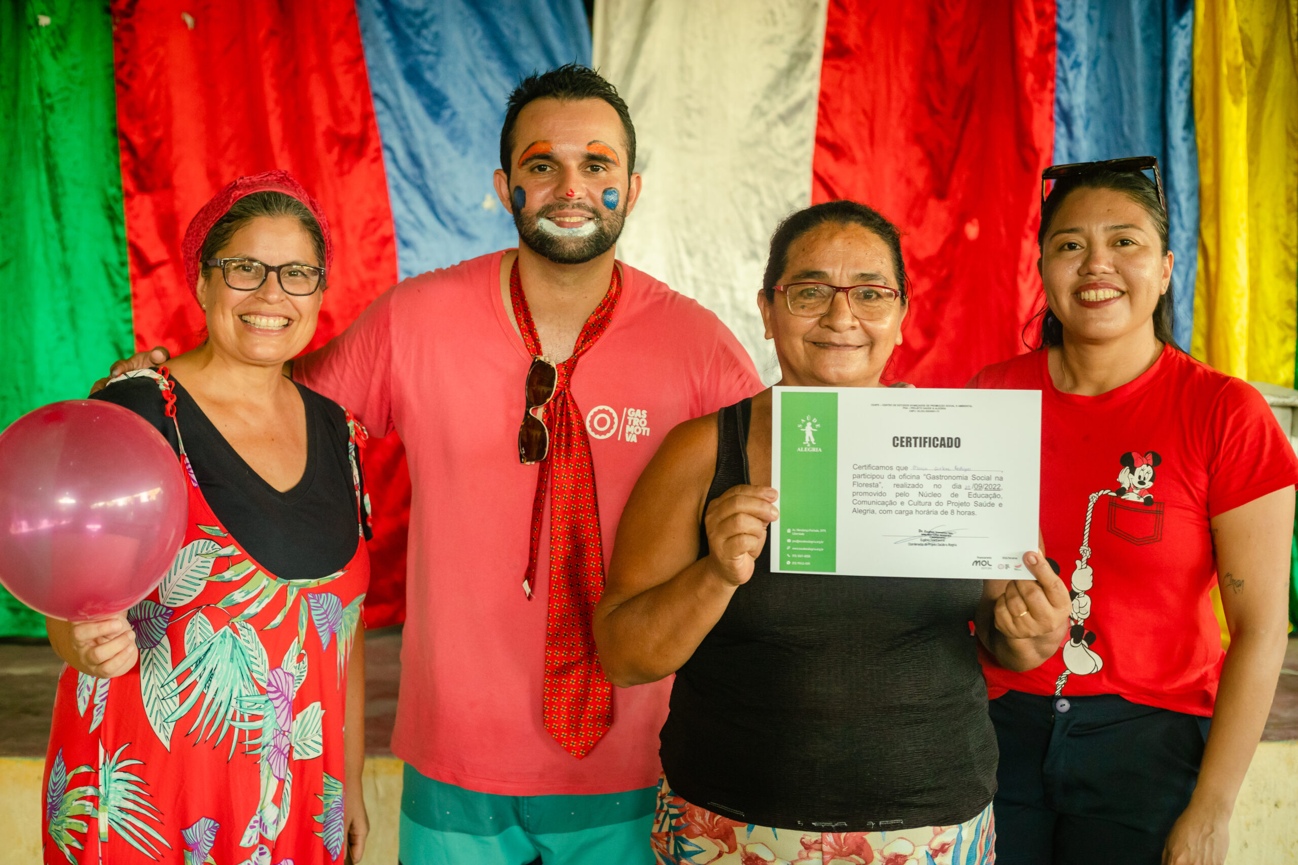 O encerramento das oficinas foi por conta do Gran Circo Mocorongo. Com muita alegria, crianças, jovens, adultos e idosos apresentaram o resultado das formações promovidas durante o dia. Além da capacitação em gastronomia, os moradores participaram de oficina de vídeo, rádio, de arte educação e circo. Foi um momento de muita emoção para quem participou pela primeira vez e pôde abraçar os palhaços da trupe. O chefe de cozinha Sardinha, virou o palhaço piaba, que sonhava em ser chef, mas não tinha tanto talento.