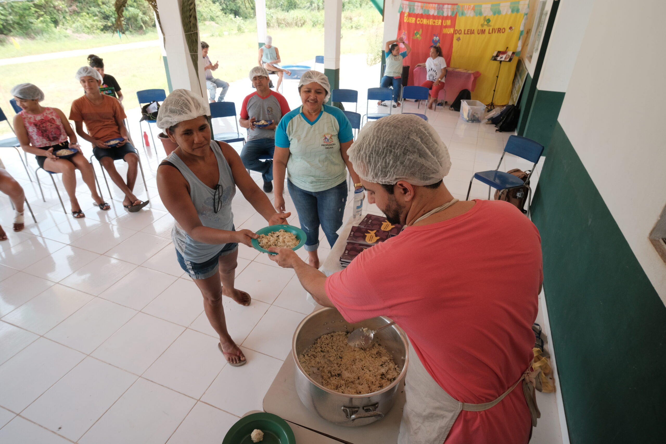 Evitar o desperdício, garantir um bom acondicionamento dos alimentos, usar a criatividade e melhorar a nutrição foram temas da formação realizada no período de 28 a 29 de setembro em comunidades e aldeias da Reserva Extrativista Tapajós Arapiuns e Floresta Nacional do Tapajós. Na primeira etapa, realizada em junho deste ano, profissionais realizaram oficinas sobre higienização, manipulação, preparo, armazenamento e conservação de alimentos, nas comunidades Vista Alegre, Capixauã, Solimões, Pedra Branca, Anumã e Carão na Reserva Extrativista Tapajós Arapiuns. “Falamos sobre higiene, armazenamento, como guardar e manipular esses alimentos, evitando desperdício. Estou muito feliz em participar desse projeto junto com o PSA e representando a ONG Gastromotiva”, ressaltou Nayara Matos, nutricionista.