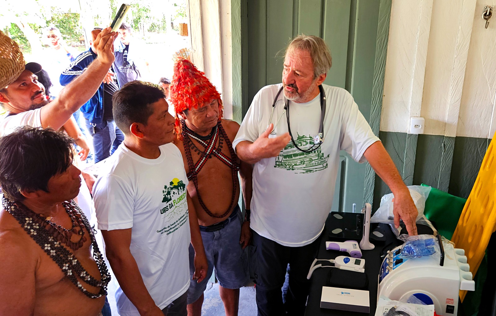 Para o cacique Juarez Sá Munduruku, a chegada dos equipamentos representa uma ampliação da capacidade de atendimento na aldeia. “Hoje é dia 4 de março, né? Que hoje a gente está recebendo o equipamento da unidade aonde ela possa atender a saúde melhor, né? Da população Munduruku daqui do Médio Tapajós”, afirmou.