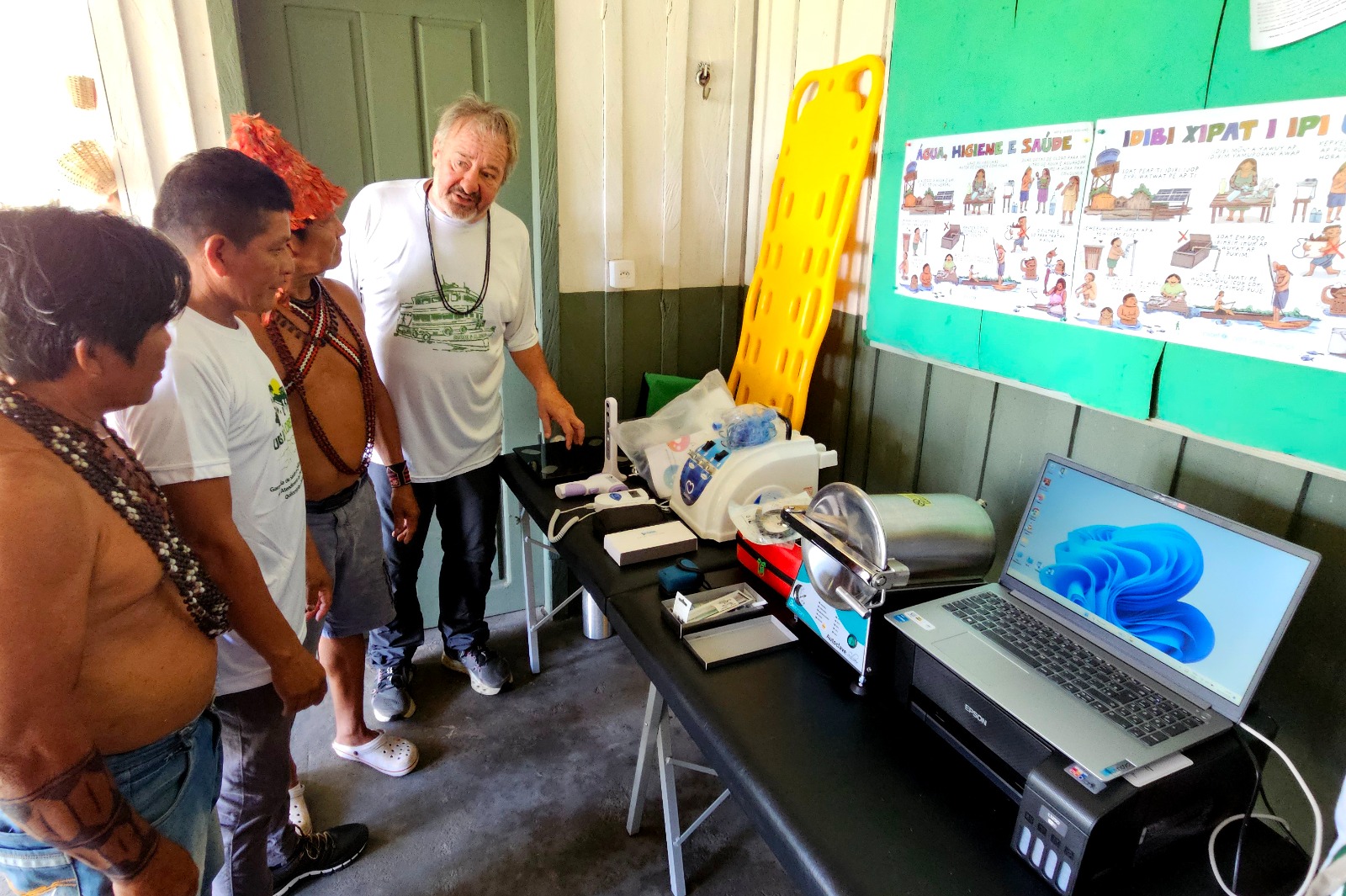 Profissionais que atuam na unidade relatam que parte desses equipamentos não estava disponível anteriormente. O enfermeiro Dagvaldo Dace Munduruku afirmou que a chegada dos materiais amplia as possibilidades de atendimento. “Hoje a gente tá tendo essa oportunidade de ter esses aparelhos que antes a gente não tinha”, disse. Ele citou a ausência de equipamentos básicos na rotina da unidade. “Não tinha um eletrocardiograma, não tinha um desfibrilador.”