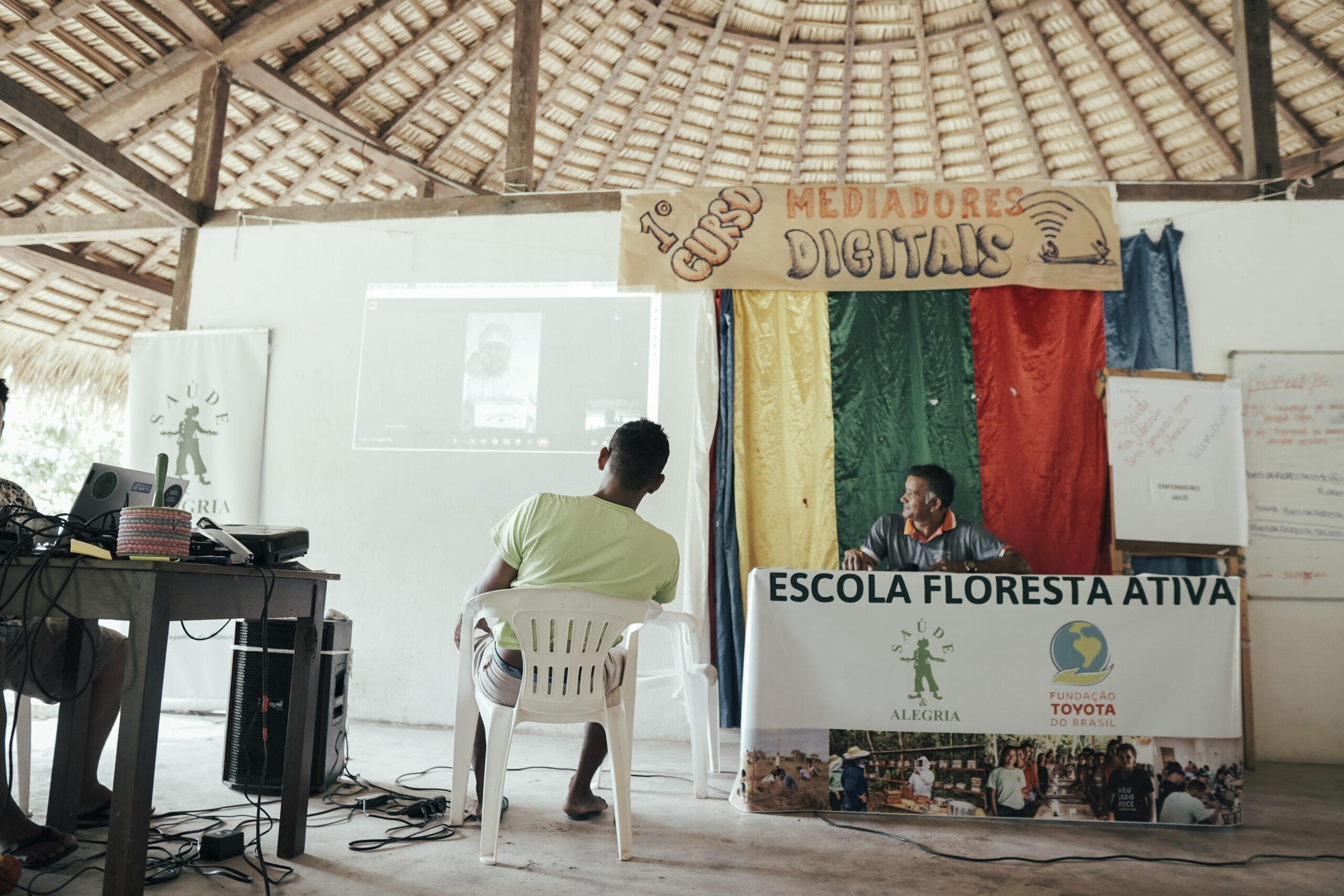 Em São Pedro, região do Arapiuns, uma Unidade Básica de Saúde recebeu conexão  para operar teleatendimentos e acesso aos moradores. Com a capacitação, Marilvana Sousa, explica que os moradores ampliarão possibilidades de defesa do bioma: “tudo isso que está acontecendo no nosso território vai facilitar ainda mais pra nós que moramos numa reserva, num território que a gente está querendo conservar”.